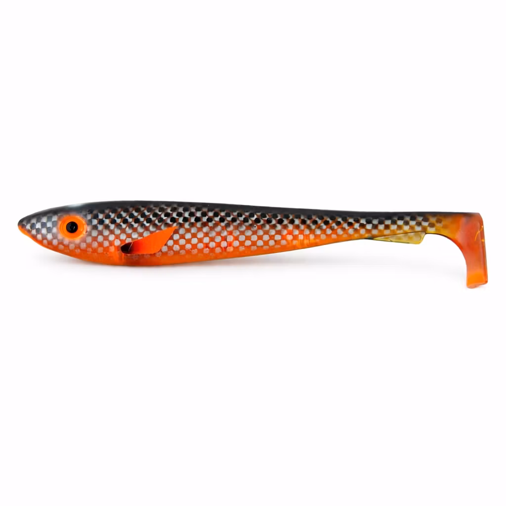 Den breda kroppen tillsammans med den kraftiga paddeln skapar en tung, rullande gång i vattnet som ger starka vibrationer och lockar rovfisk på avstånd. Betet imiterar en större betesfisk och triggar aggressiva hugg.