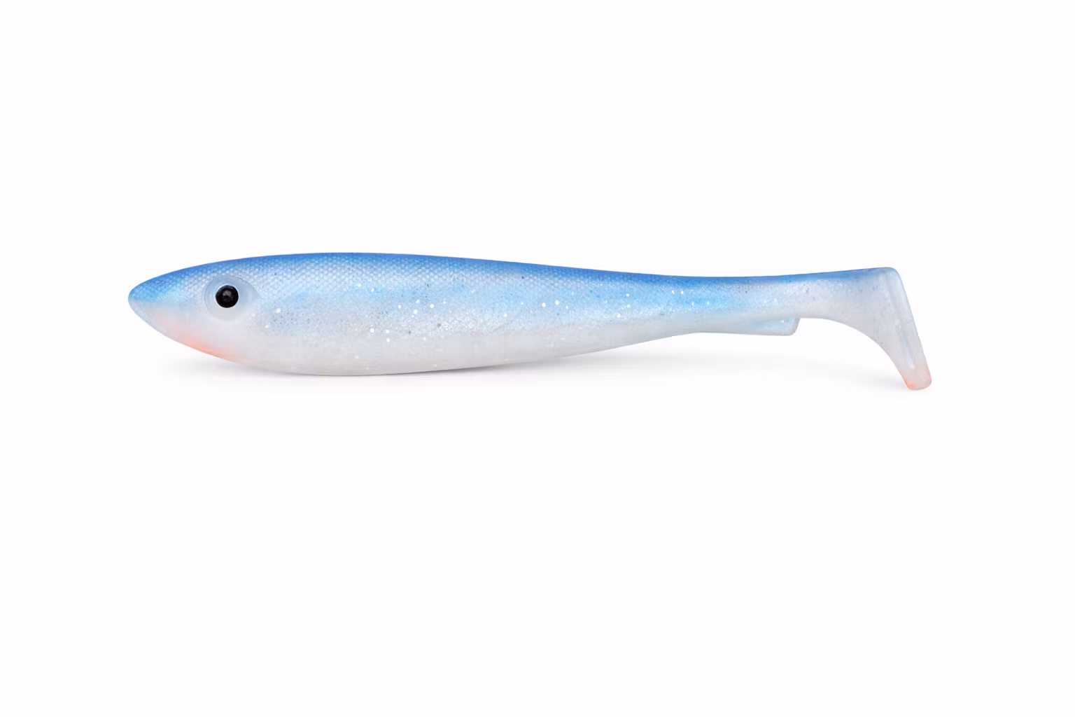 FISKRO McRubber Shad 23 cm – Blue Pearl är ett kraftfullt gummibete baserat på en beprövad design från Svartzonker, utvecklat för riktat fiske efter större gädda.