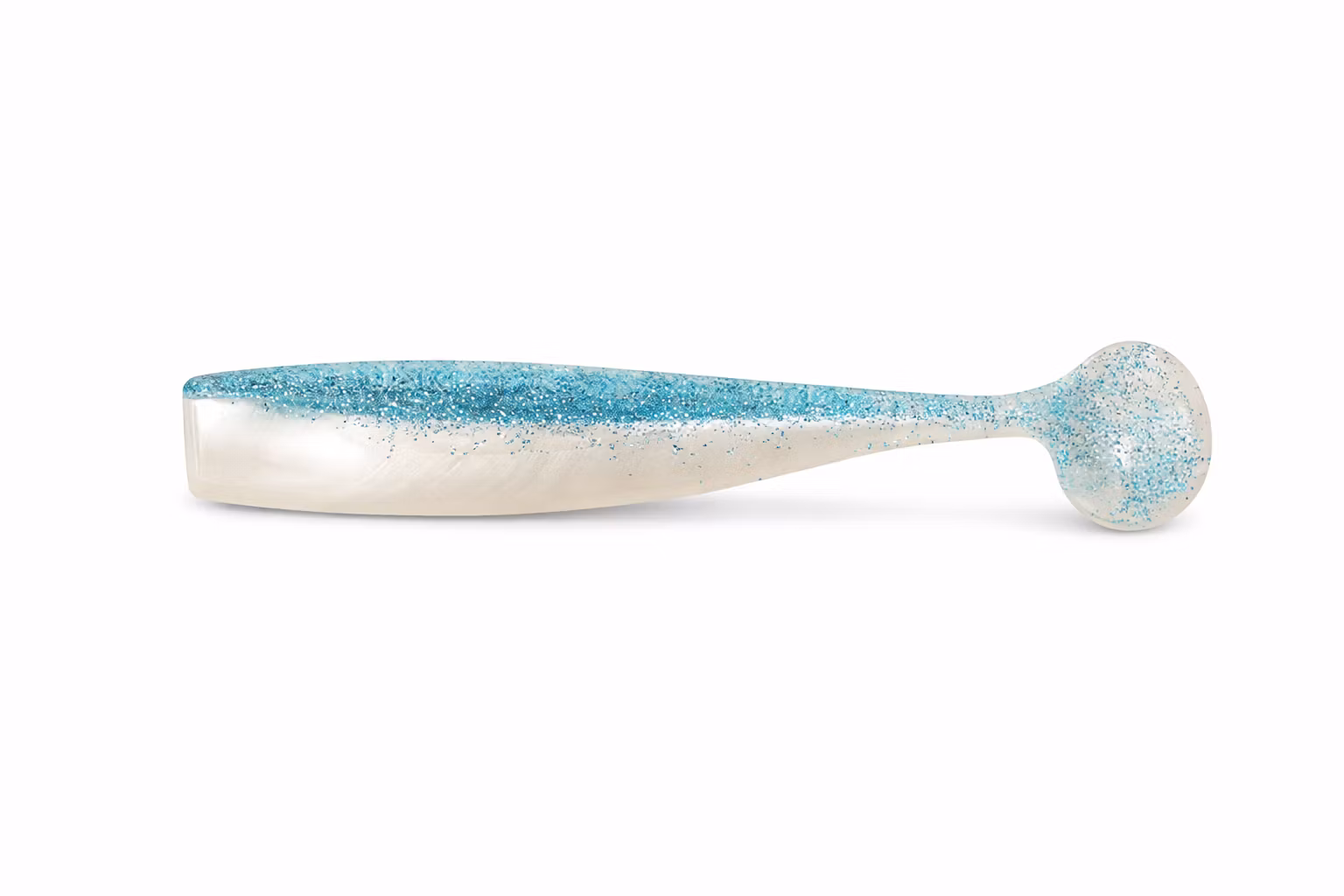 Färgen Baby Blue Shad kombinerar en ljus kropp med blå glitterrygg som ger ett naturligt och samtidigt synligt bete i vattnet. Den här färgen fungerar särskilt bra i klart vatten eller när fisken är försiktig.