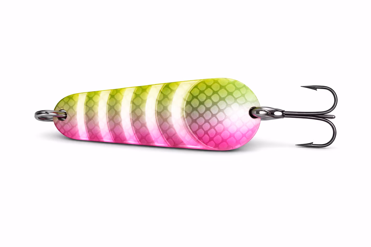 Färgkombinationen rosa och chartreuse skapar stark kontrast i vattnet och syns tydligt även på lite längre avstånd. Det gör draget särskilt effektivt i klart vatten och vid soliga förhållanden, när rovfisken ofta jagar visuellt.